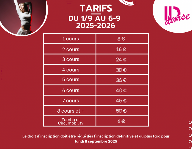 Tarifs des cours de danse